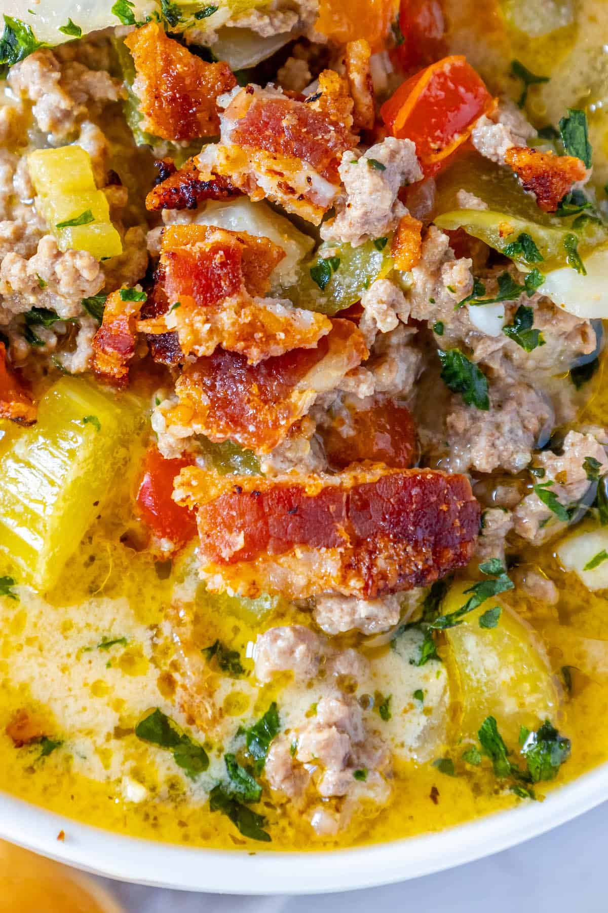 - Crunchy Crumbled Bacon (4-6 strips, for garnish): Bacon bits provide a savory and smoky crunch that complements the cheeseburger theme of the soup. They serve as a delightful garnish.